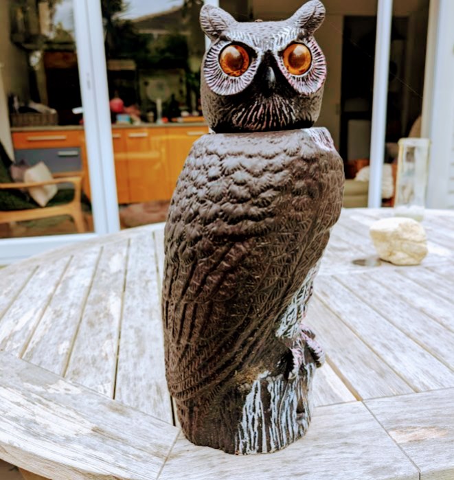Plastic owl with a bobble head and plastic eagle which looks like a pigeon. Utterly useless.