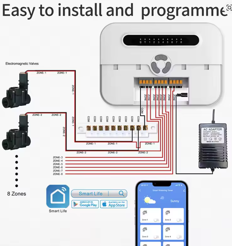 Bought one of these a while ago: Smart Sprinkler Controller .Its a wifi connected, Alexa and Google Home -aware controller for an home garden irrigation system. I installed sprinklers in lawn a while ago, the type that pop up out of grass. I had spent some time writing my own control system by found this on Aliexpress and took the easy route.