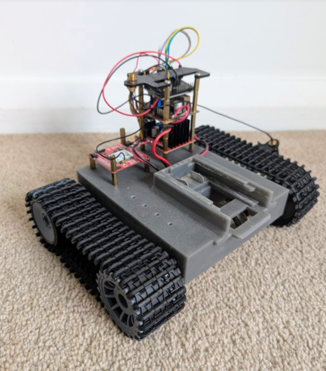A panning dual camera system which detects birds on lawn using ML, maps position in image to 2d positional space on lawn and sends an automated drill-battery powered, self charging buggy out to see off bird. Oh, the buggy had GPS-RTK aka mm-precision positioning on board.